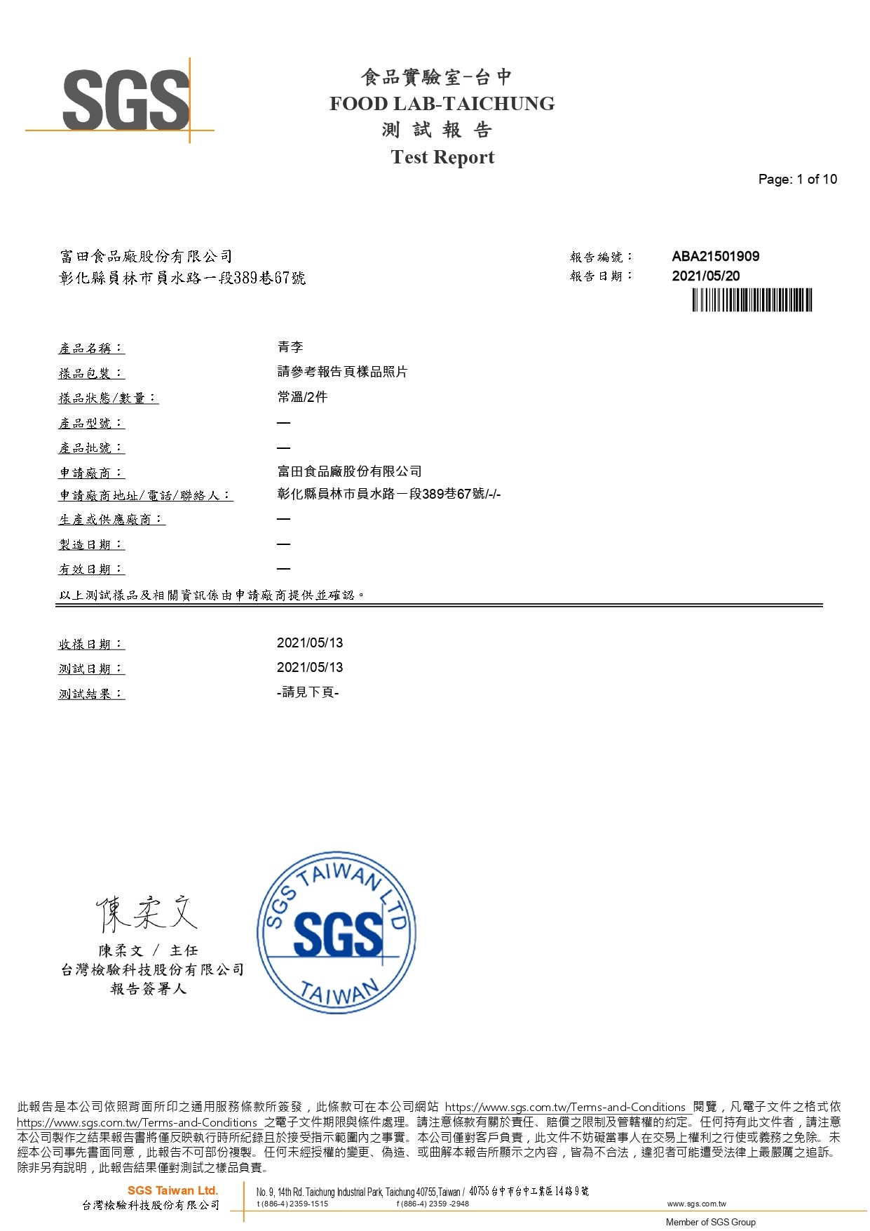 2021青李藥檢